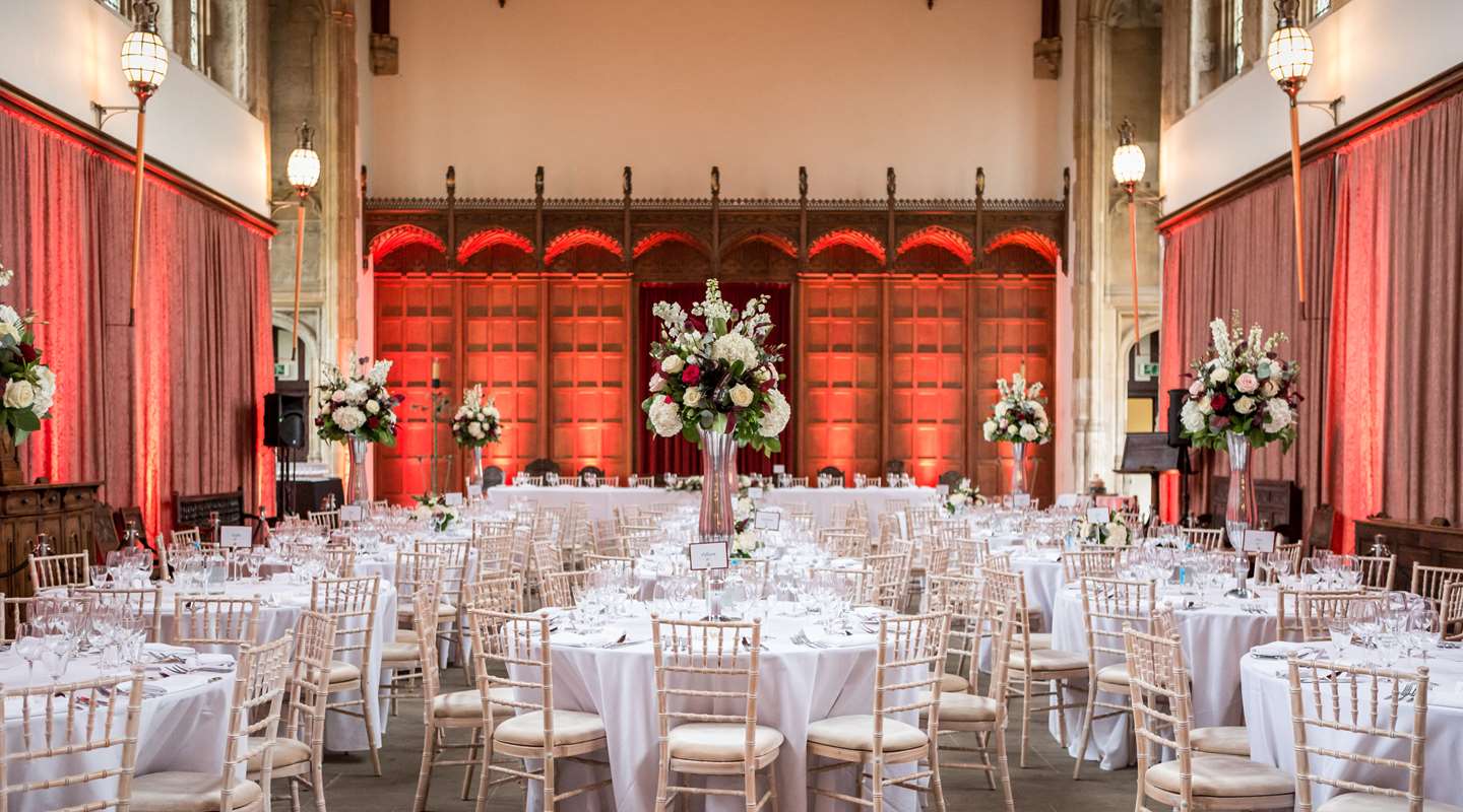 In dramatic contrast to the Art Deco mansion, the Great Hall is an impressive example of medieval architecture, providing a spectacular setting for a wide range of corporate events, including conferences, lunches, away days, banquets and evening receptions. The atmosphere can be fully tailored with creative lighting and bespoke décor, arranged through the venue’s accredited suppliers to create the perfect ambience for your event.