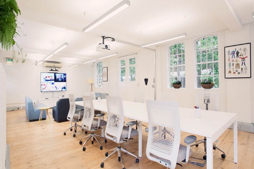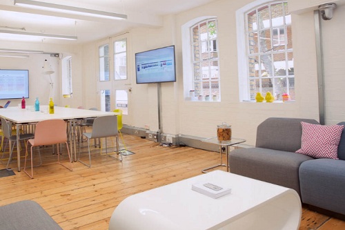 The Meeting Room features HD projectors, floor-to-ceiling whiteboards, 75- or 85-inch 4K TVs and modular furniture while the lounge, a bright and airy boardroom style meeting space which sits 10 people is fitted with comfortable sofas and tea making facilities.